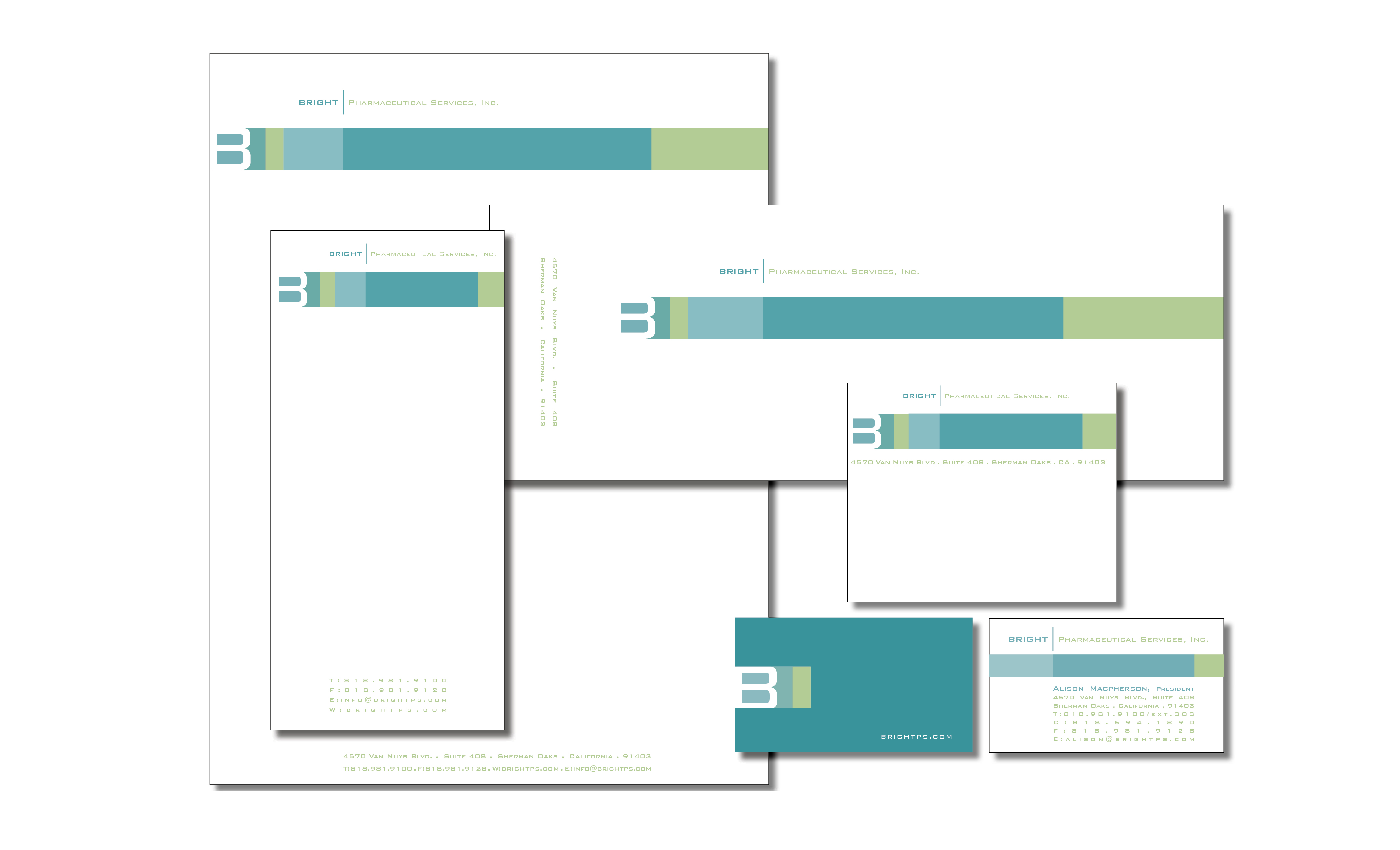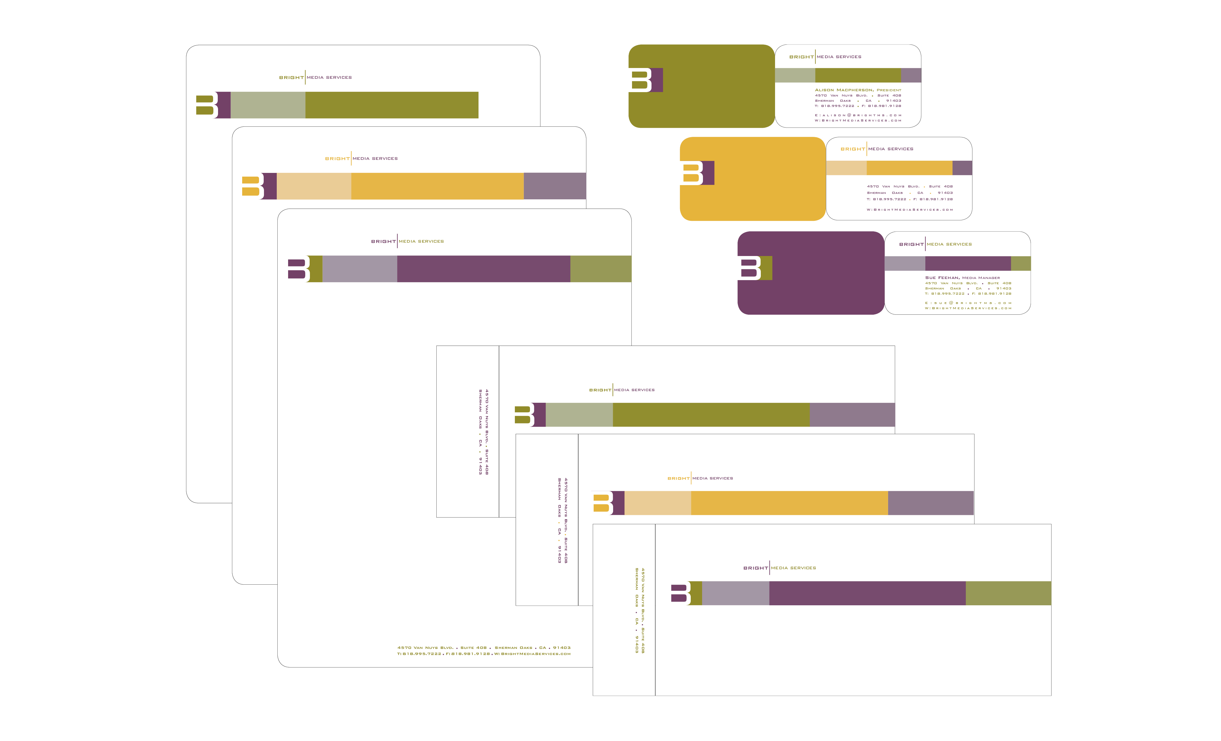 This is the sister company to Bright Pharmaceutical Services, so the ID was to companion, but through color, show the creative side to this media placement company.