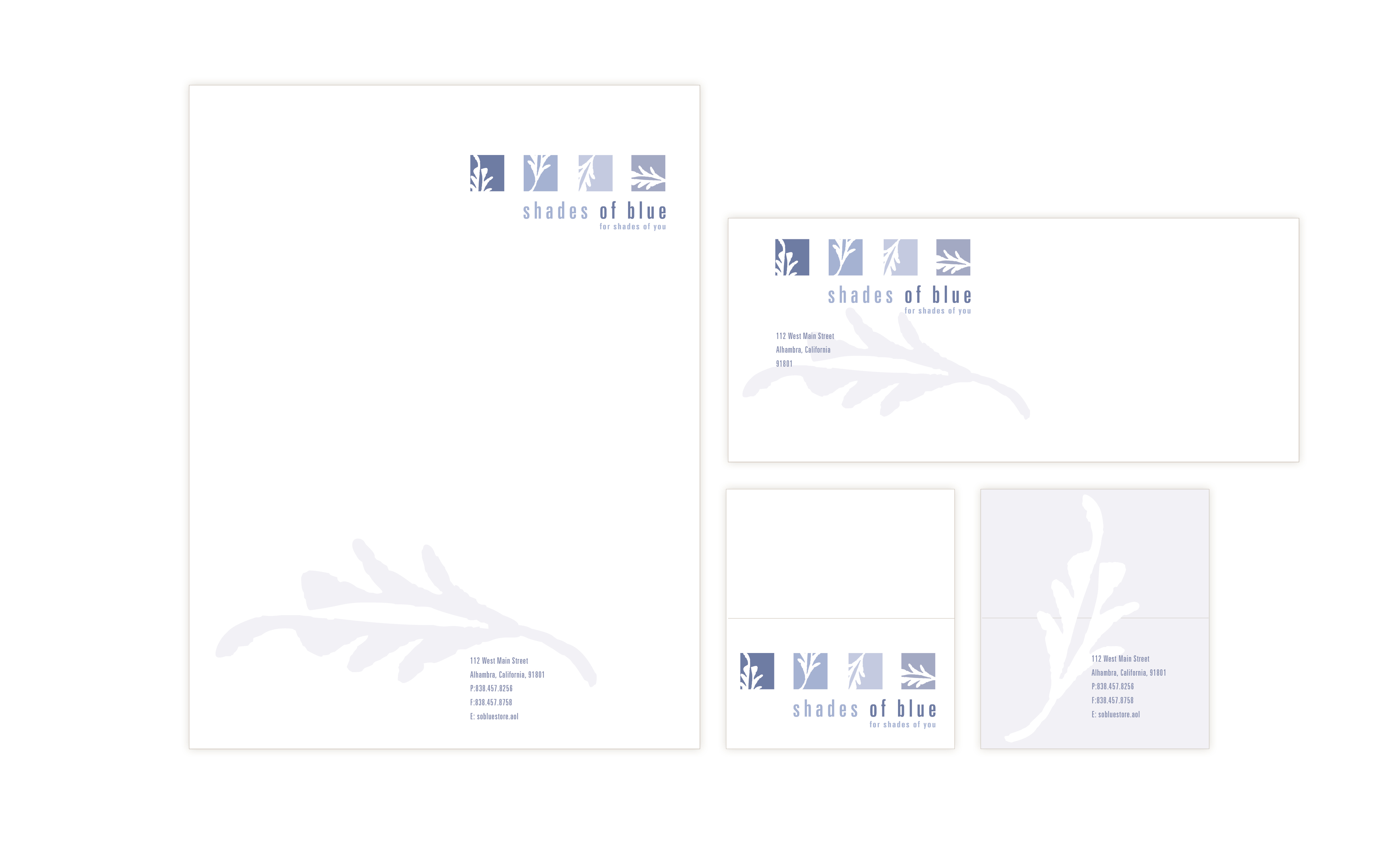 This identity was created for a bridal jewelry designer, and the feel of the identity was to be romantic and incorporate blue into the design.