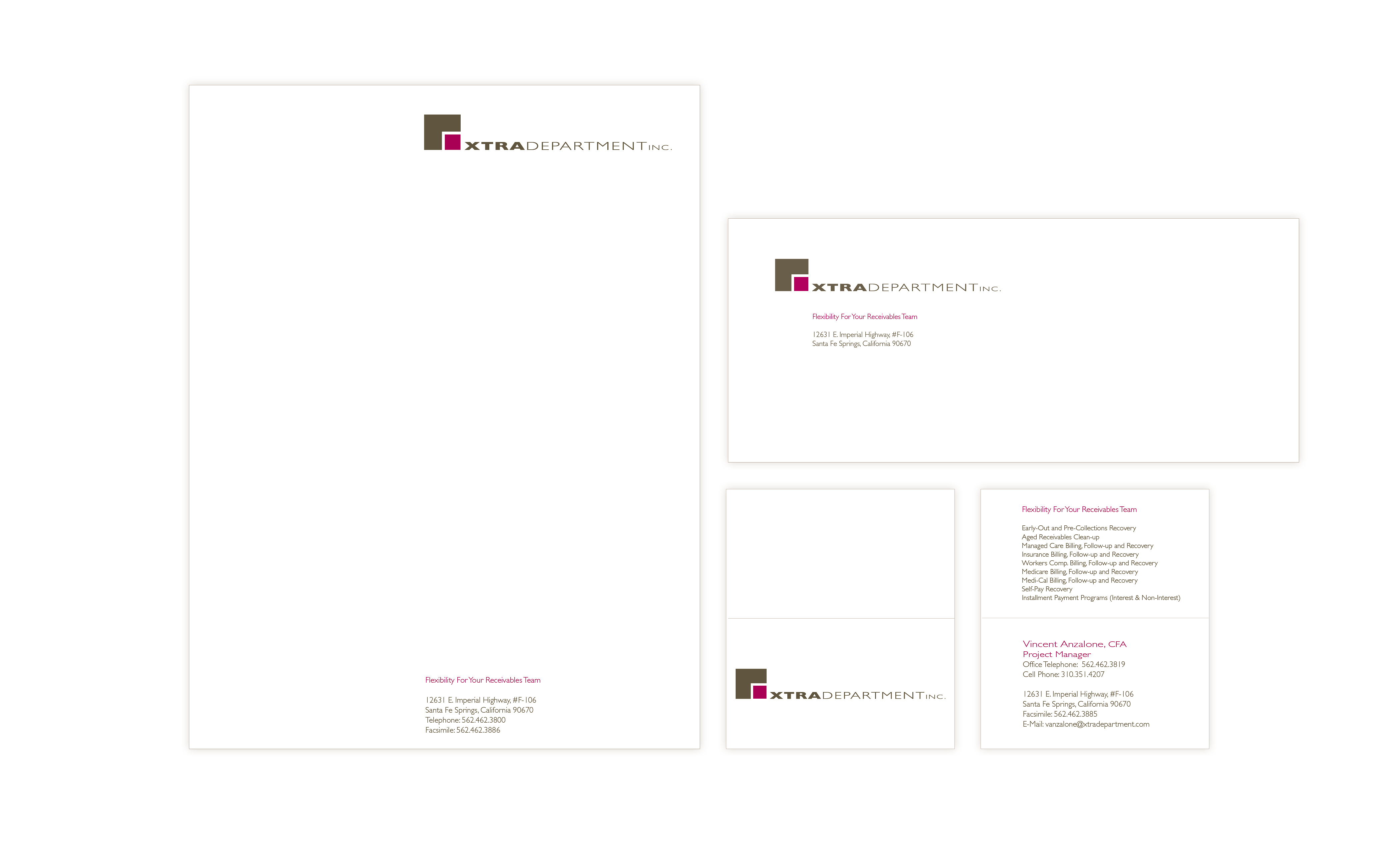 This logo was designed to communicate that Xtra Department integrated into your hospital or medical office billing department seamlessly as a collections and payment management service.