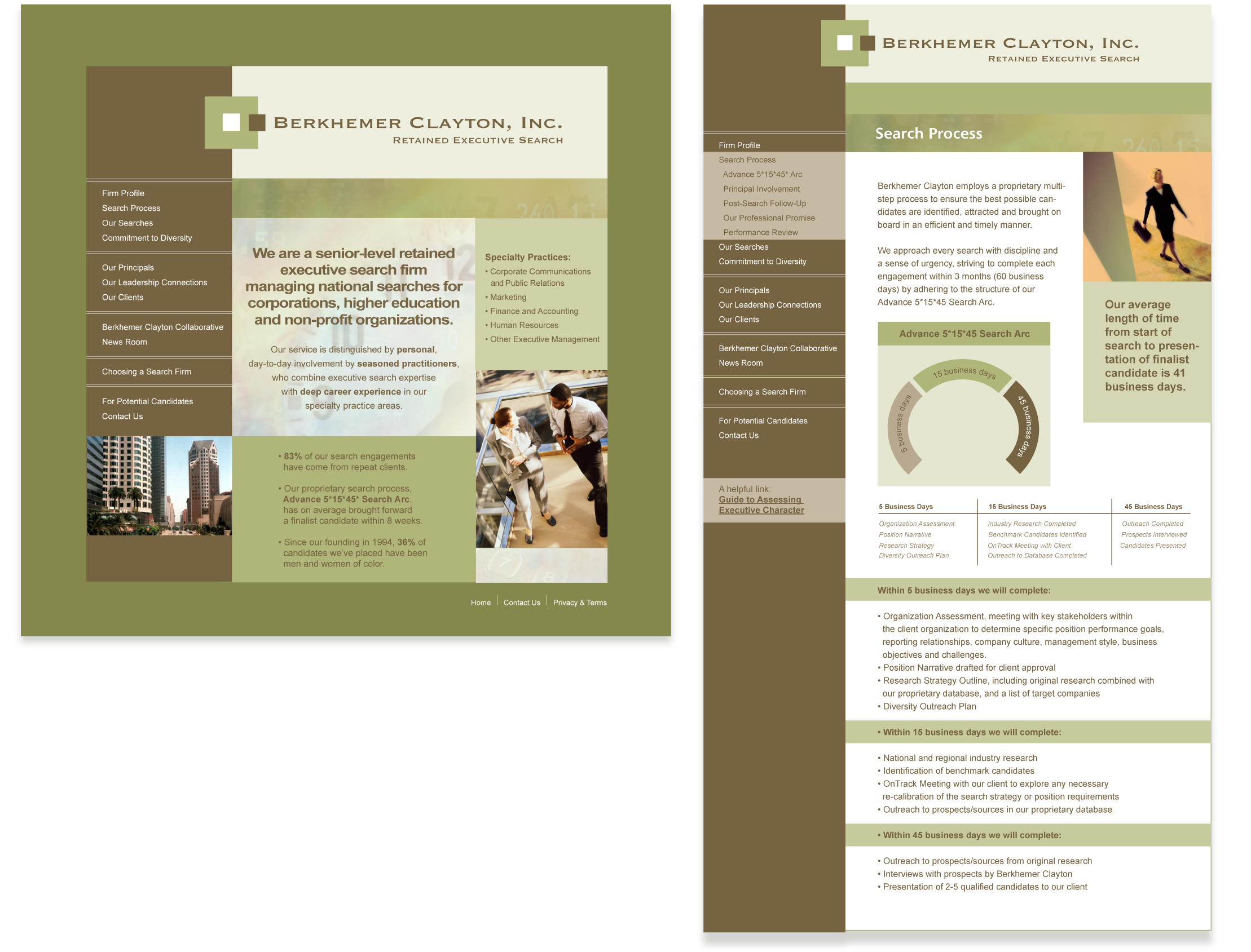 This website was designed for an executive search company to guide the viewer through their recruitment process and provide and overview of the company.