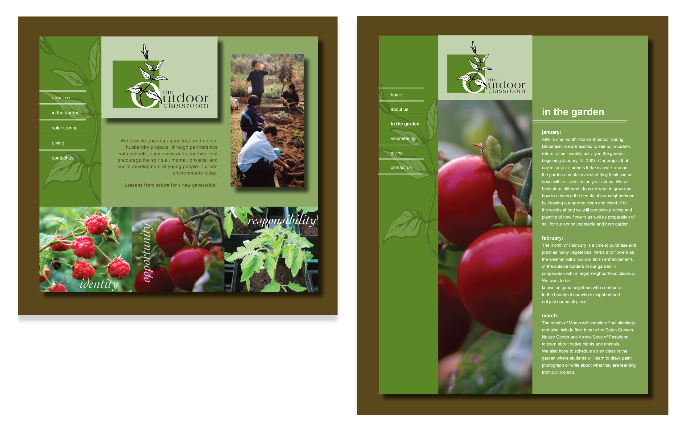 This website design was to convey the feeling of the garden in earth tones and greens and to inform the viewer of the program to bring inner-city kids into the garden.